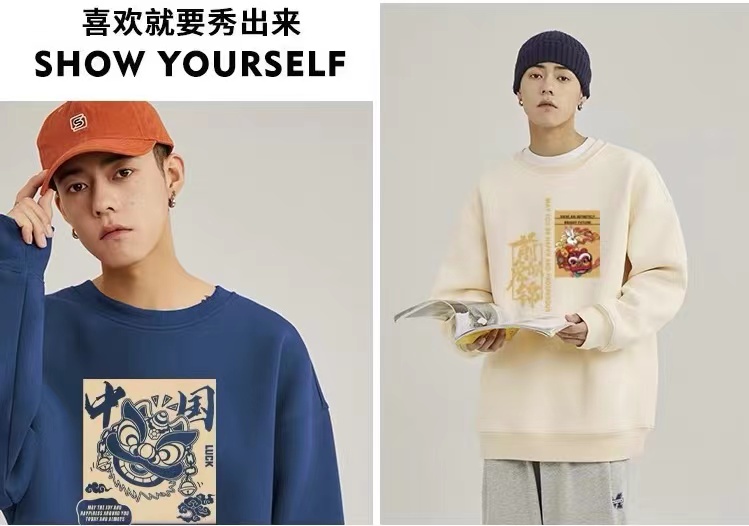 加绒卫衣男士加厚冬季国潮圆领上衣男新款潮牌中国风青少年外套男