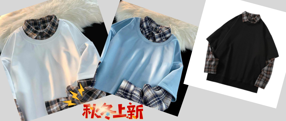 大码2-300斤长袖衬衫男撞色假两件百搭清新学院风小众卫衣外套