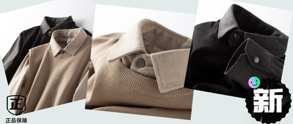 看得见的好质量!秋冬季保暖休闲加厚拼接假两件衬衫领打底衫男士