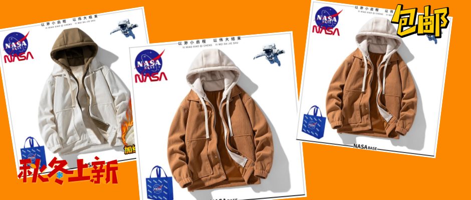 NASA假两件外套男女春秋款连帽潮牌灯芯绒上衣纯色简约秋冬季夹克