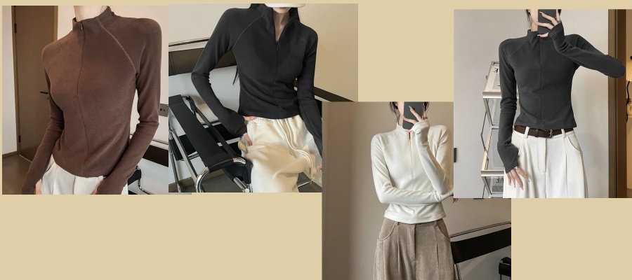 美拉德秋冬新款德绒保暖拉链长袖T恤女气质修身别致内搭打底上衣