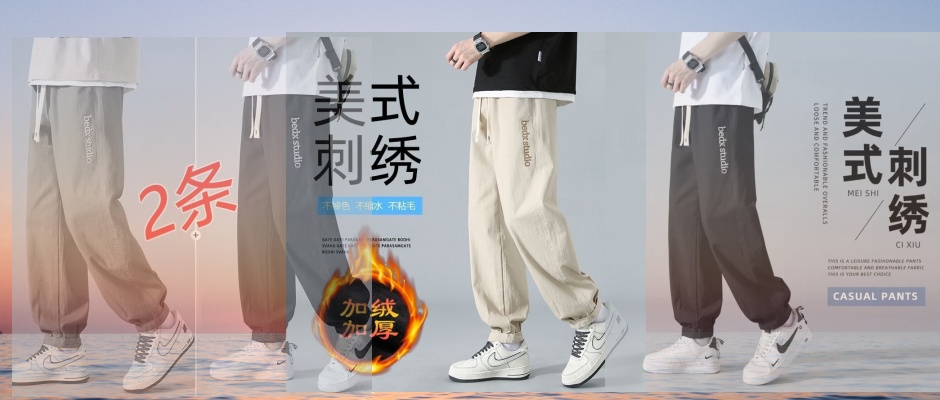 秋冬季加绒加厚裤子男士运动裤带绒休闲长裤男加绒束脚冬天裤子男