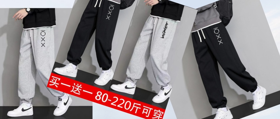 裤子男春夏季加肥加大码宽松黑色潮流运动束脚裤休闲长裤男卫裤