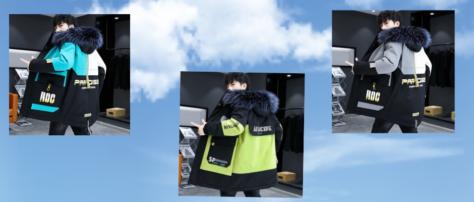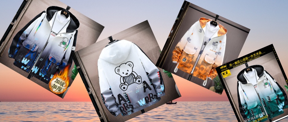 青少年渐变小熊连帽外套男孩秋冬季加绒加厚学生夹克潮流大童外套