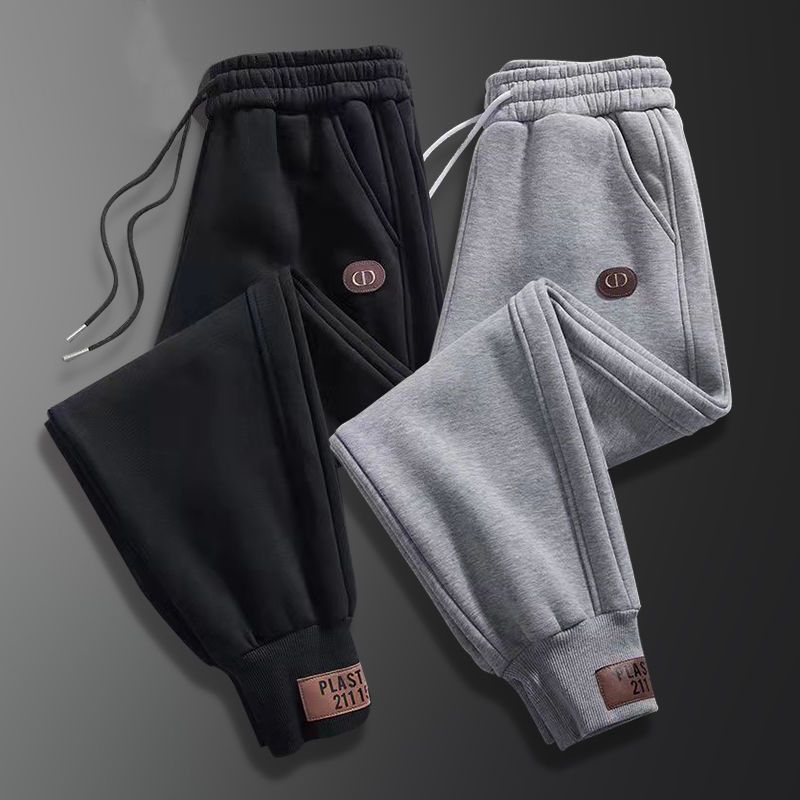 黑色束脚大码运动裤男秋冬加绒潮流学生休闲裤宽松卫裤新款九分裤