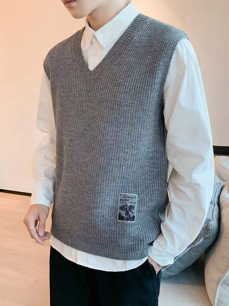 港风毛衣马甲男宽松日系潮流外搭v领毛线背心ins学院风无袖针织衫