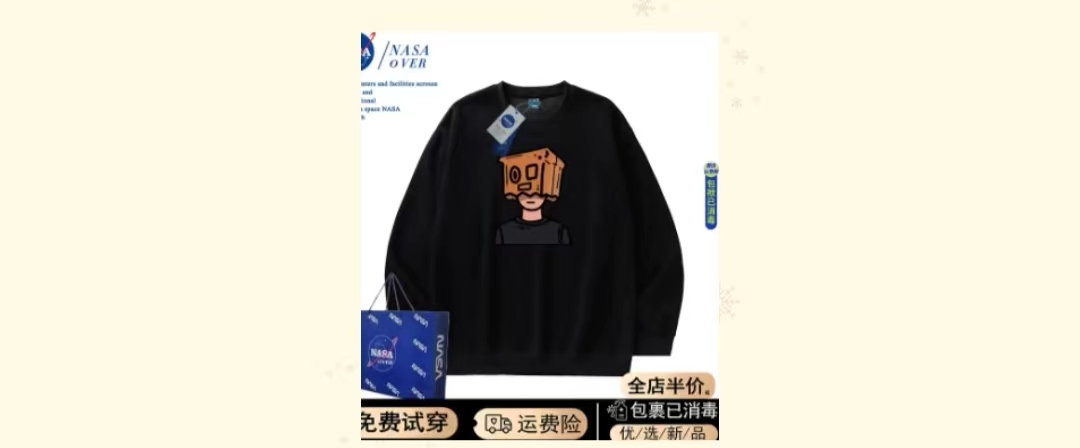NASA联名美式圆领卫衣男士春秋款2023新款美式潮牌宽松情侣装外套 白色 M