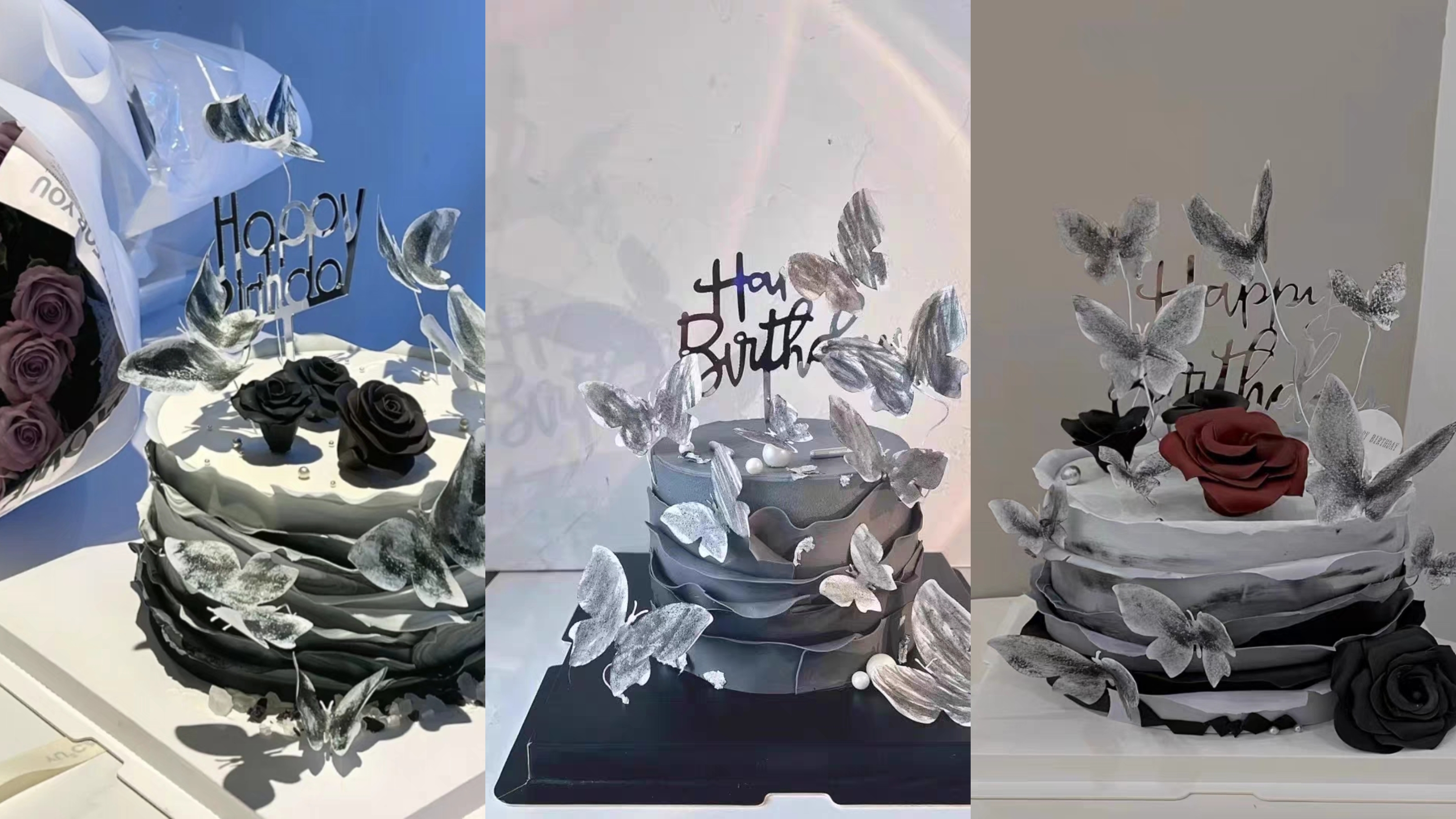 艺术七夕节蝴蝶暗黑系玫瑰翻糖生日蛋糕北京长沙杭州全国同城配送