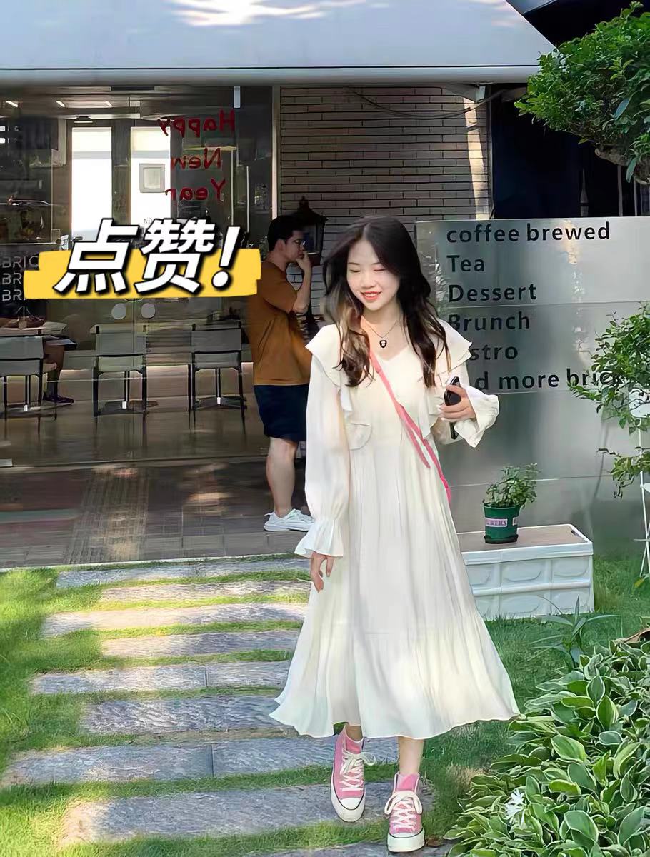 荷叶V型领 显瘦拉长身形 荷叶裙边 俏皮灵动
