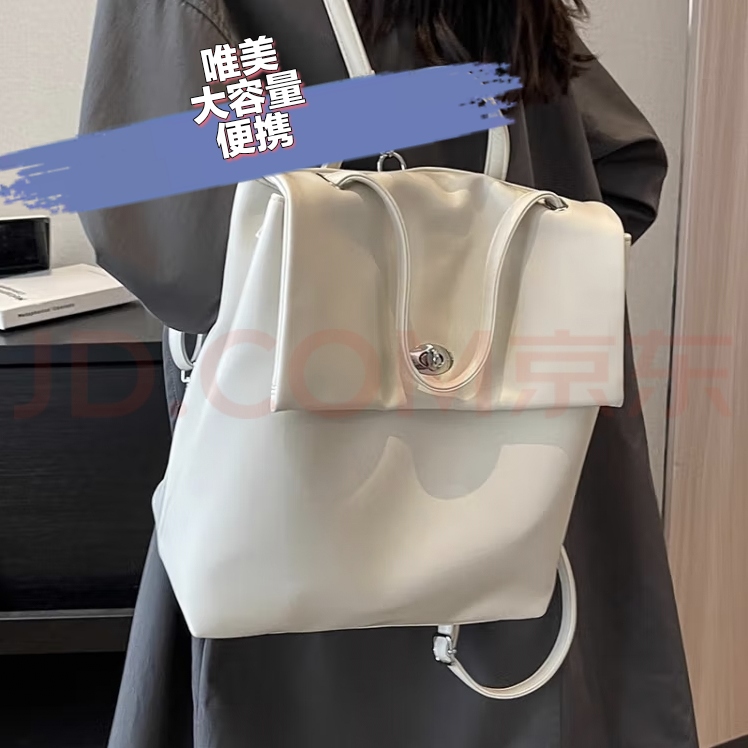 盛菲曼质感背包女士双肩包女2023新款时尚纯色书包女生大学生短途旅游包 米白色
