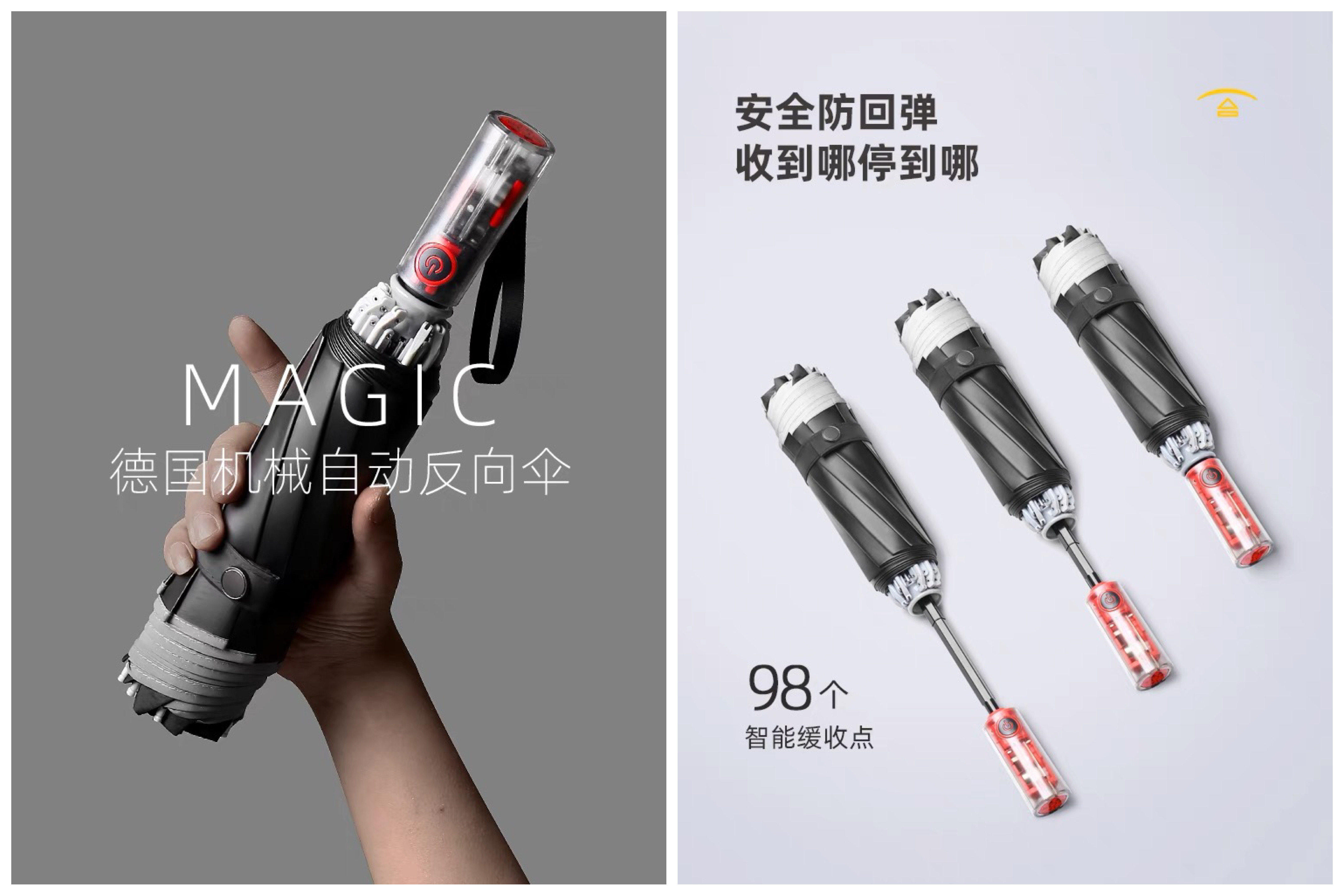 全自动机械反向反光折叠雨伞男女防回弹节节收遮阳晴雨两用伞大号