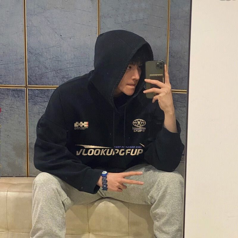 POLOVILLAE新款美式重磅连帽卫衣男秋冬季加绒加厚宽松上衣外套潮