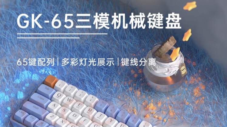 狼途(LANGTU)GK65无线三模游戏机械键盘笔记本电脑电竞办公有线 厂润金轴 天蓝