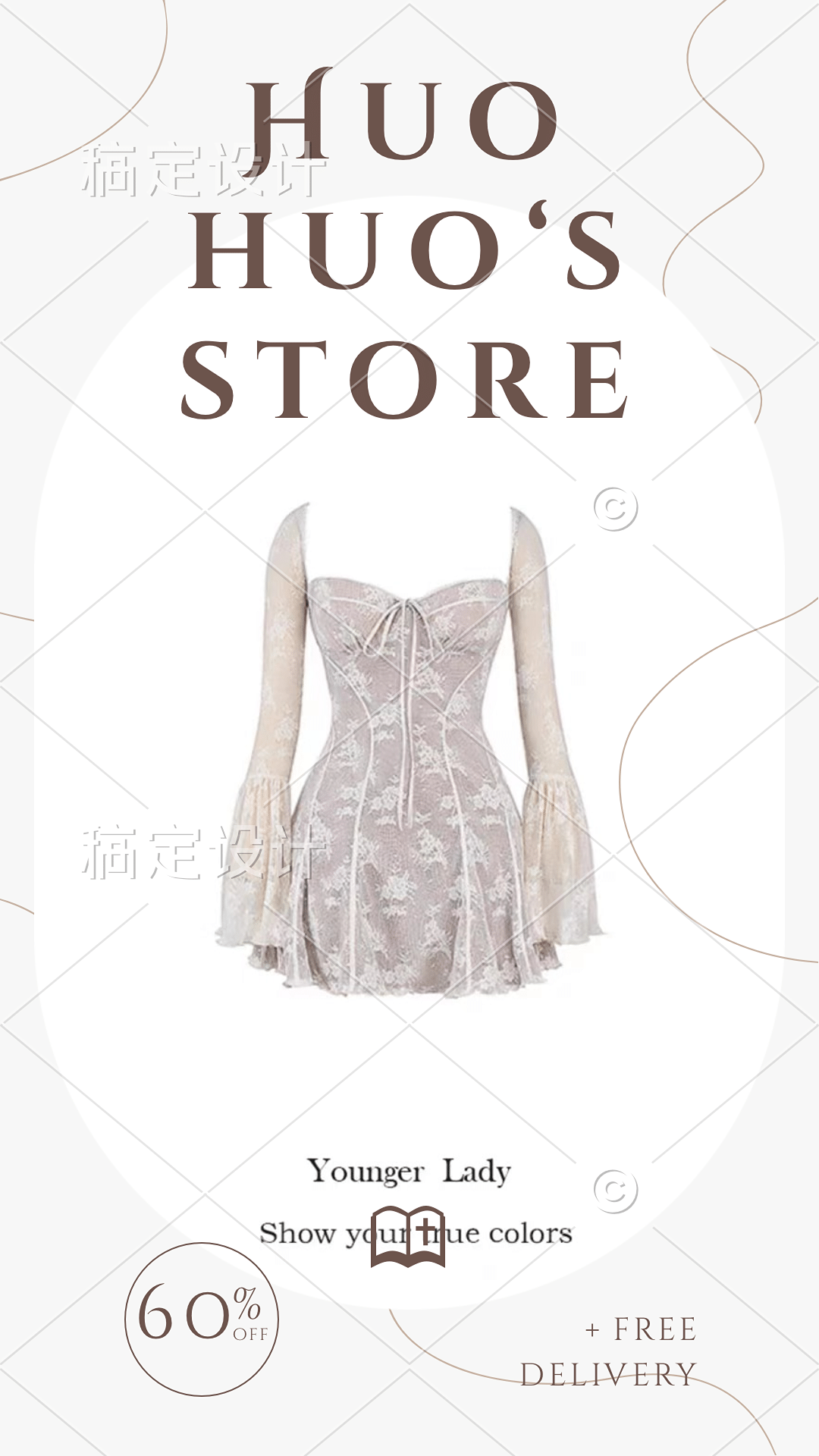 Younger Lady法式蕾丝系带方领连衣裙house同款芭蕾风短裙公主裙