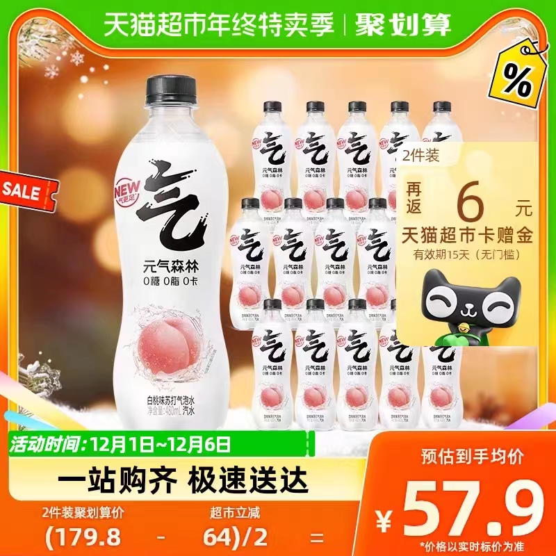 元气森林白桃味苏打气泡水480ml×15瓶0糖0脂0卡饮料无糖汽水整箱 1件装