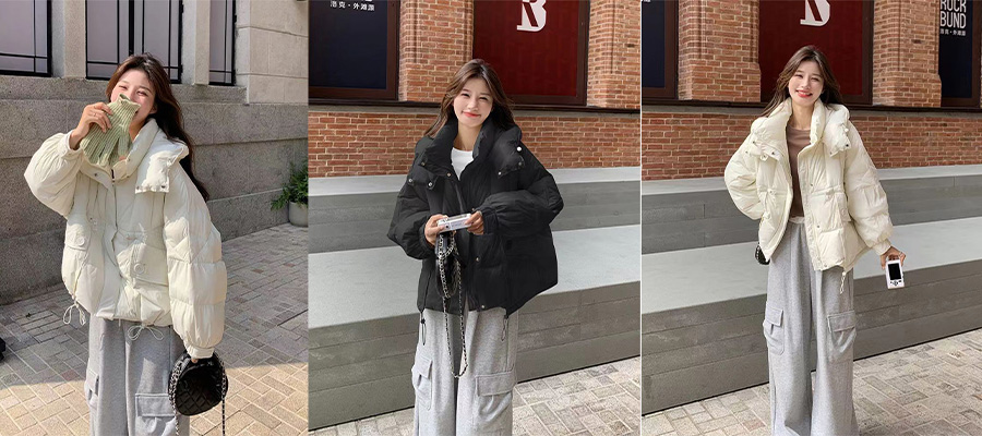 特大码300斤冬季新款棉服外套女面包服连帽宽松百搭加厚外套女潮