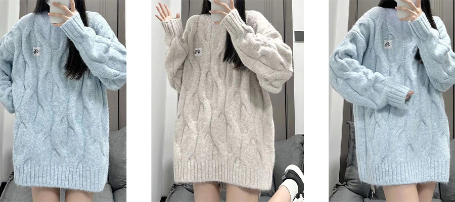 日系奶fufu麻花圆领毛衣女秋冬宽松慵懒风bf软糯加厚针织衫外套潮