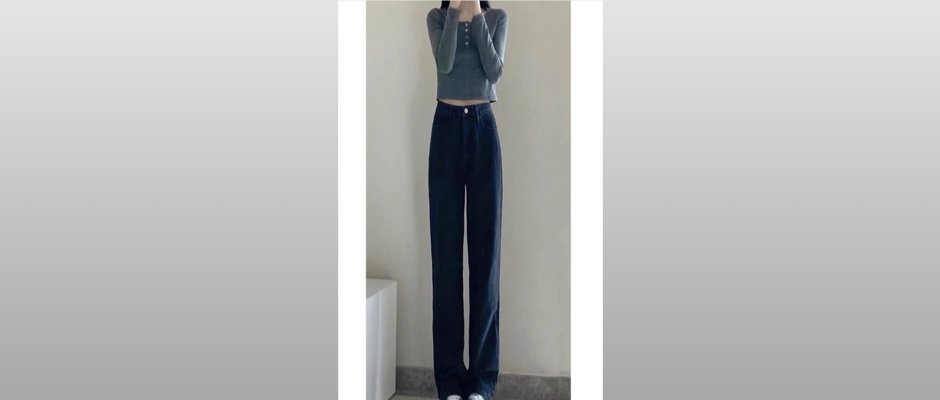 新款秋冬加绒款高腰宽松显瘦显高阔腿裤