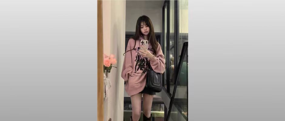 2023秋冬新款加绒oversize连帽慵懒风上衣外套