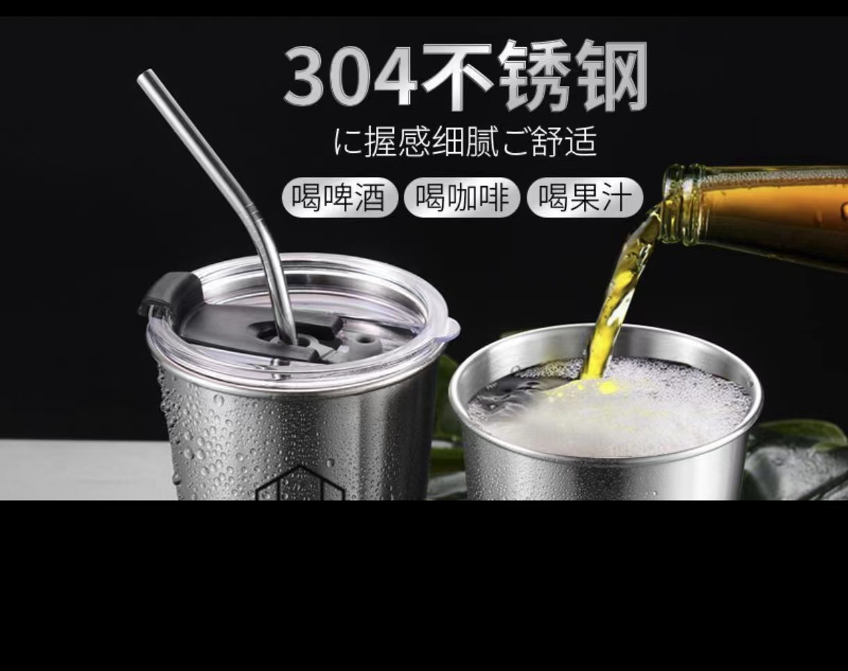 北欧风304不锈钢金属啤酒杯大号杯子家用冷饮杯ins带盖子马克水杯