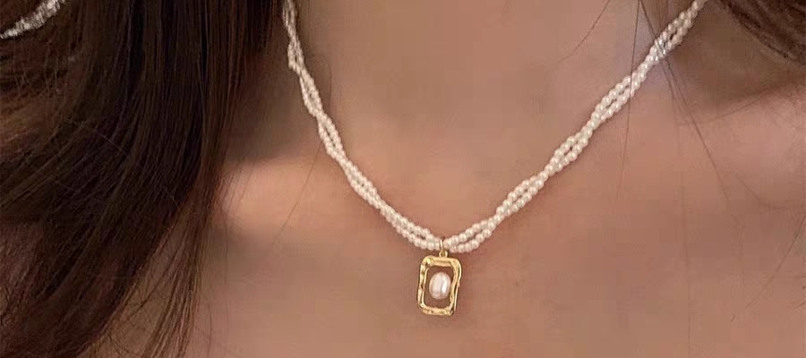 施家极细双层叠戴珍珠项链女夏轻奢小米珠锁骨链气质高级小众颈链