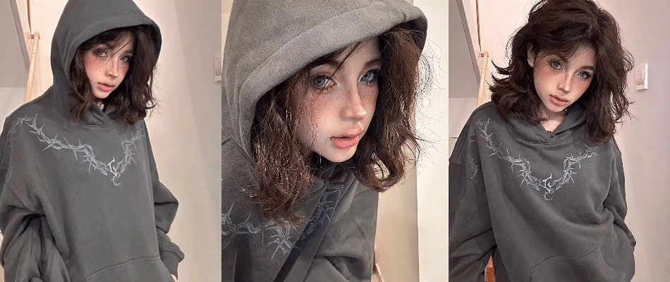 明星同款 荆棘LOGO胶印360g连帽卫衣宽松加绒情侣帽衫重磅原版