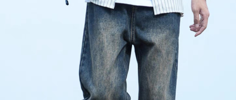 复古直筒加绒牛仔裤男士冬季宽松