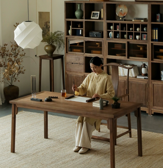 新中式黑胡桃木实木大书桌简约家用书法桌书画桌书房家具套装组合