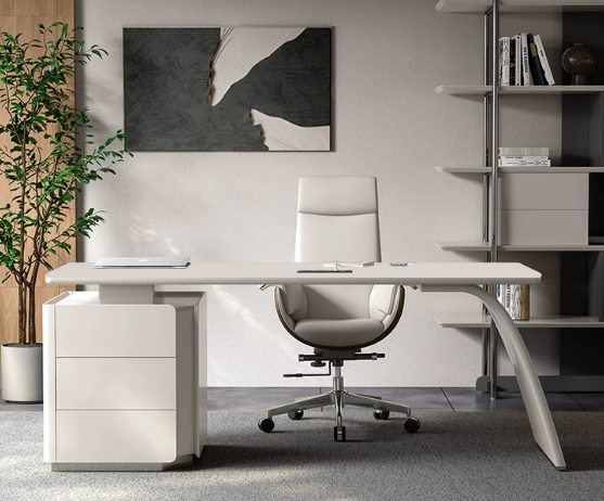 式极简实木烤漆书桌轻奢高级办公桌设计师书房电脑桌医美咨询桌
