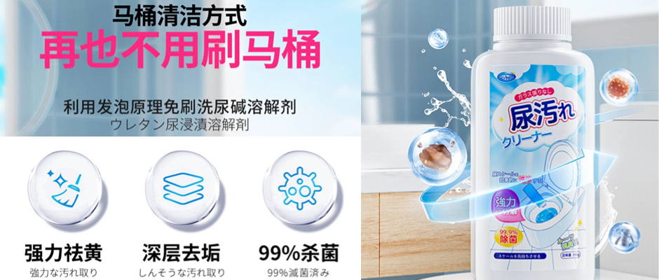 尿碱溶解剂马桶清洁剂强力去黄除垢剂厕所清洗去渍除臭神器活氧净