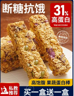 蛋白棒代餐燕麦能量饼干0低无糖精脂肪卡解馋热量谷物饱腹零食品