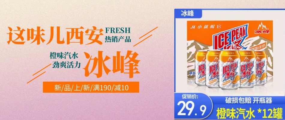 陕西特产冰峰橙味汽水330ml*12罐半箱西安网红碳酸饮料怀旧老汽水