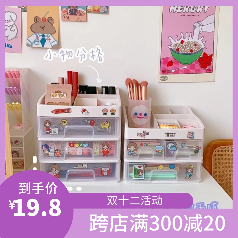 【福利仅售19.8起 ins少女心抽屉式桌面整理收纳盒】学生防尘文具盒。