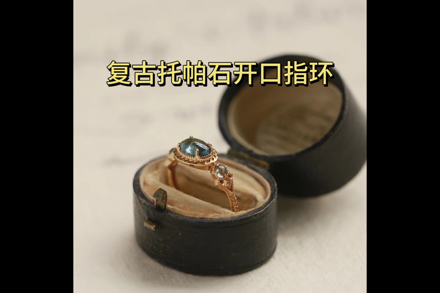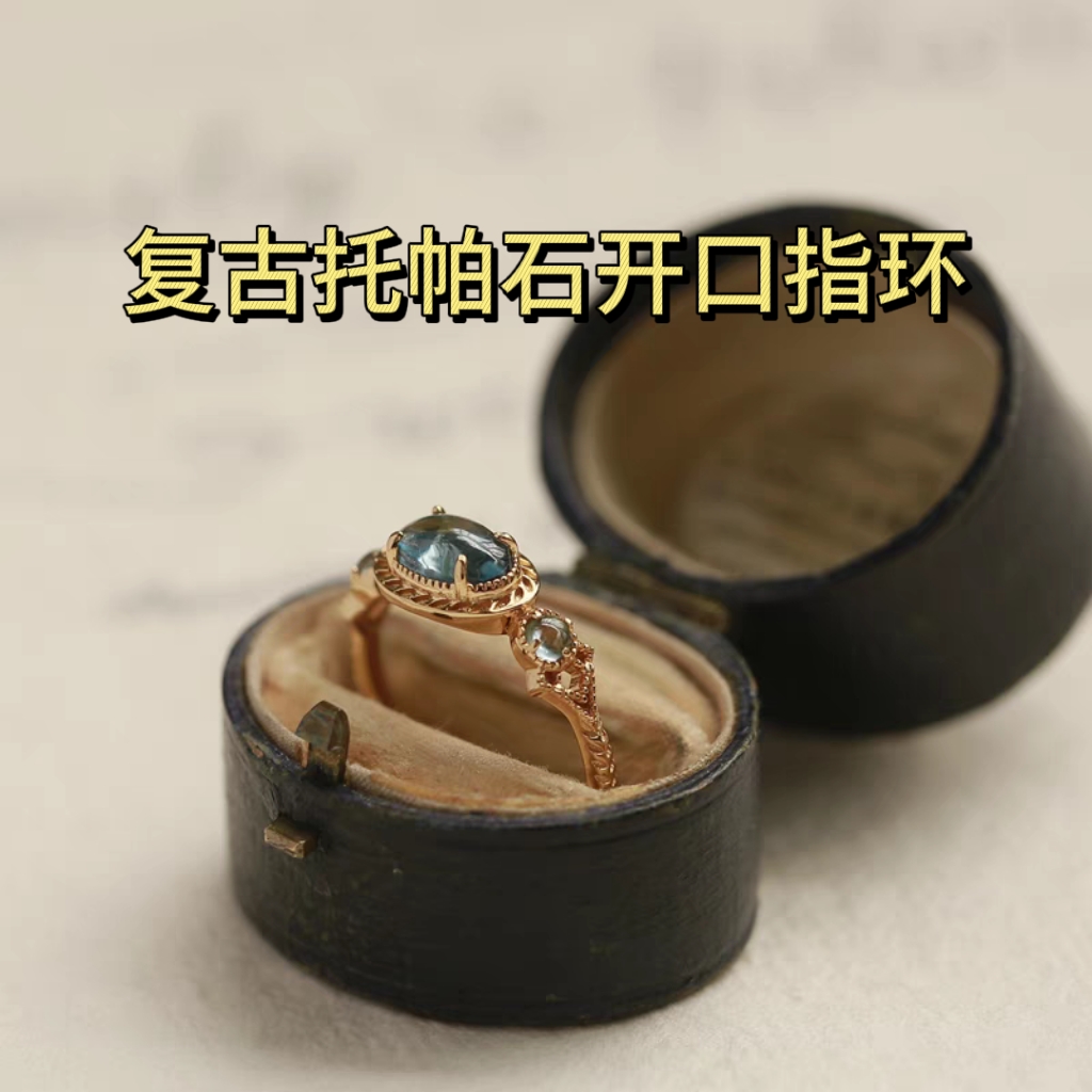 葡曼日系复古托帕石戒指银镀金开口指环