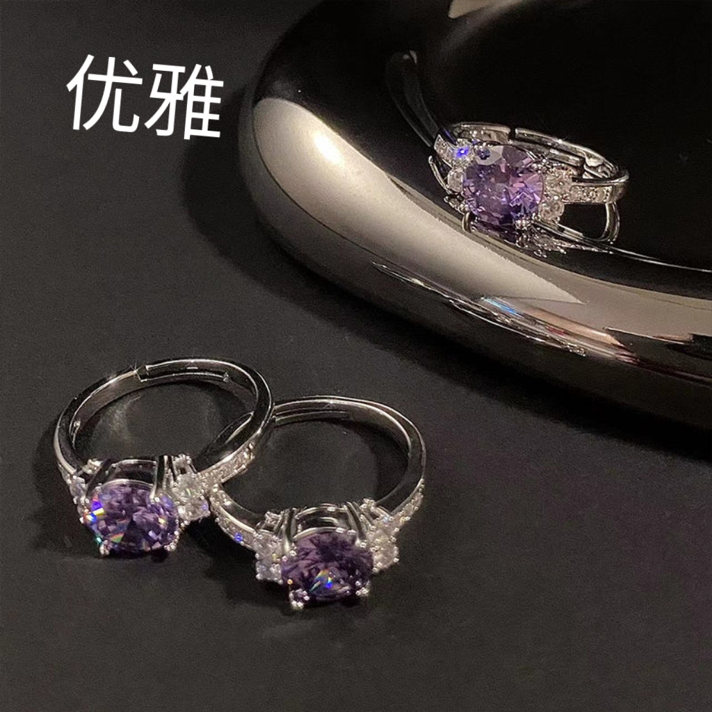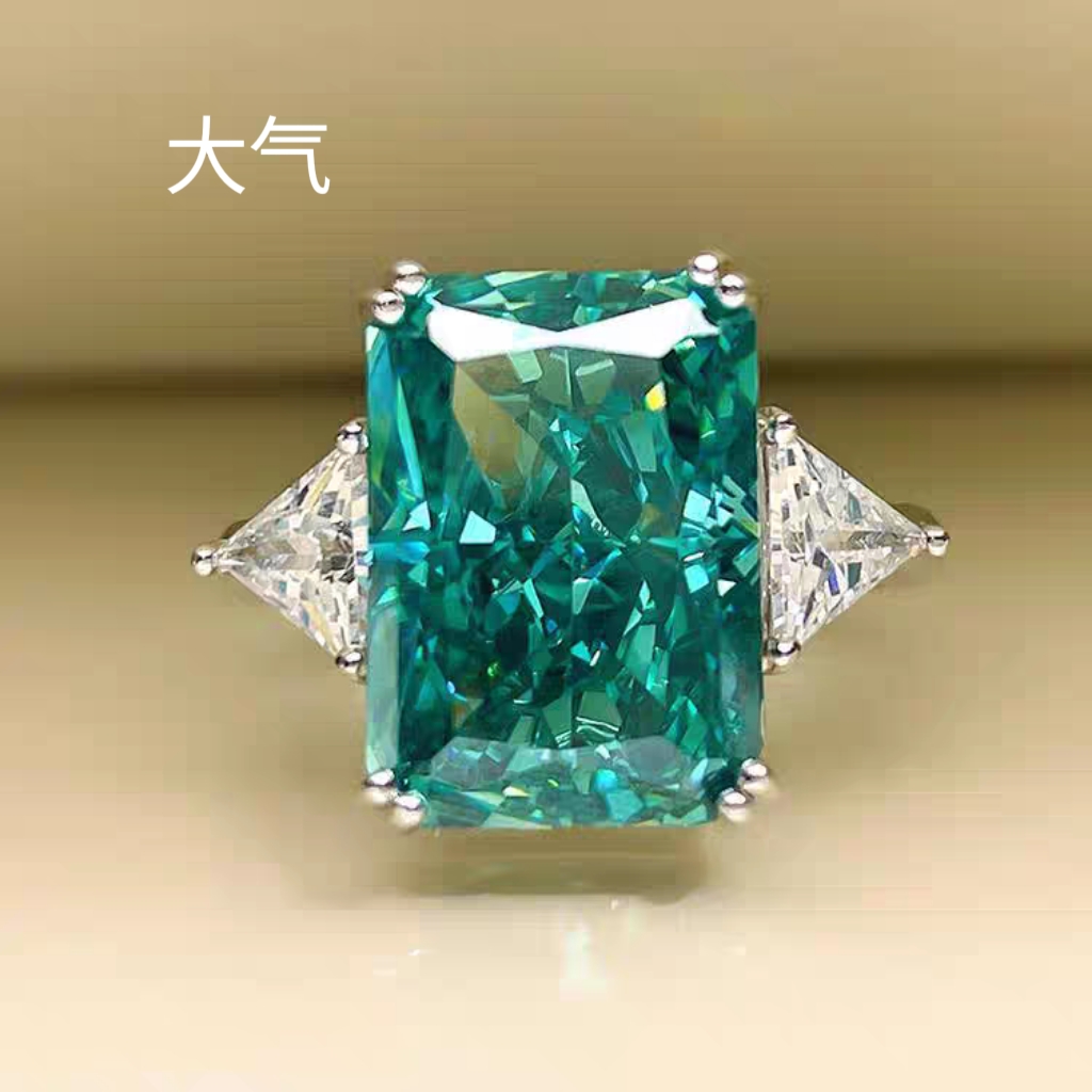 方形高碳锆石钻轻奢切绿钻戒指女简约气质时尚轻奢百搭开口食指戒