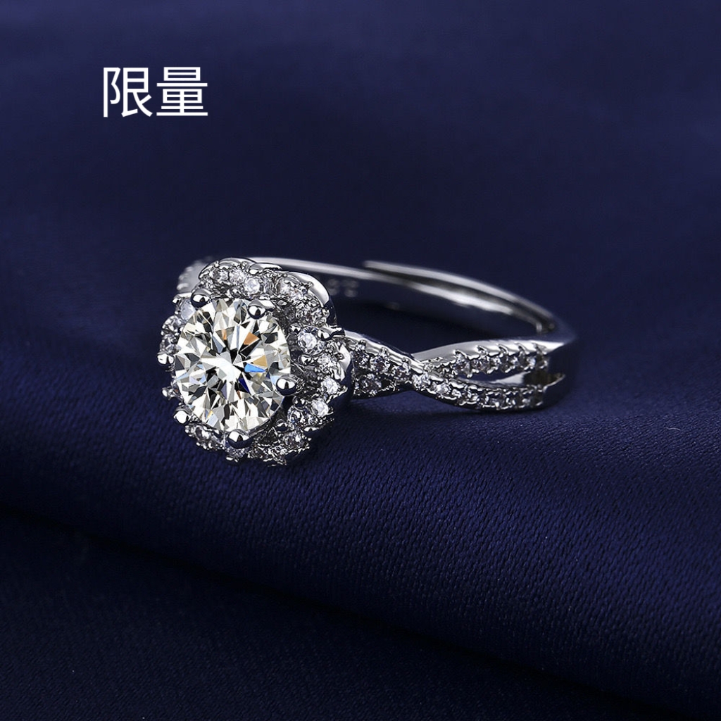 高颜值莫桑钻戒指女爱莎公主手捧花不掉色七夕情人节婚礼求婚钻戒