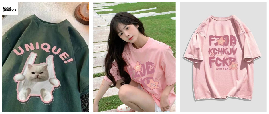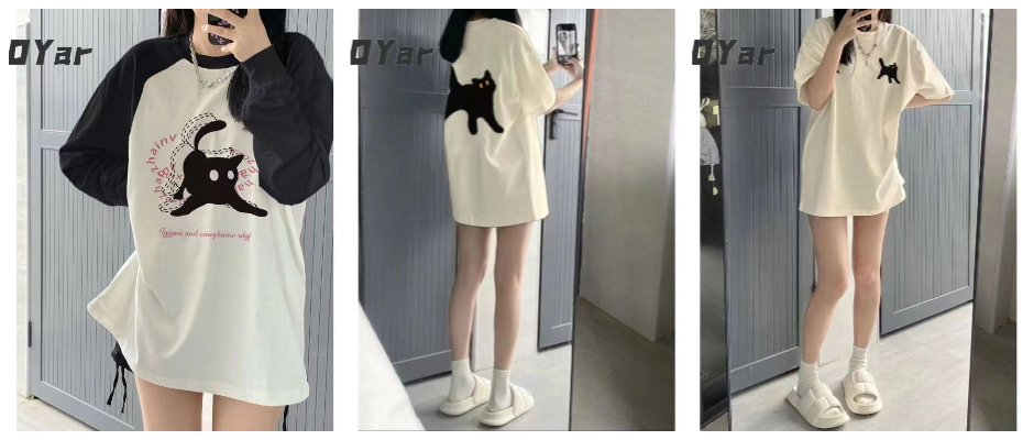 LAPAY-P100%纯棉个性袋子猫咪夏季短袖t恤女宽松百搭i情侣装上衣 粉色 S