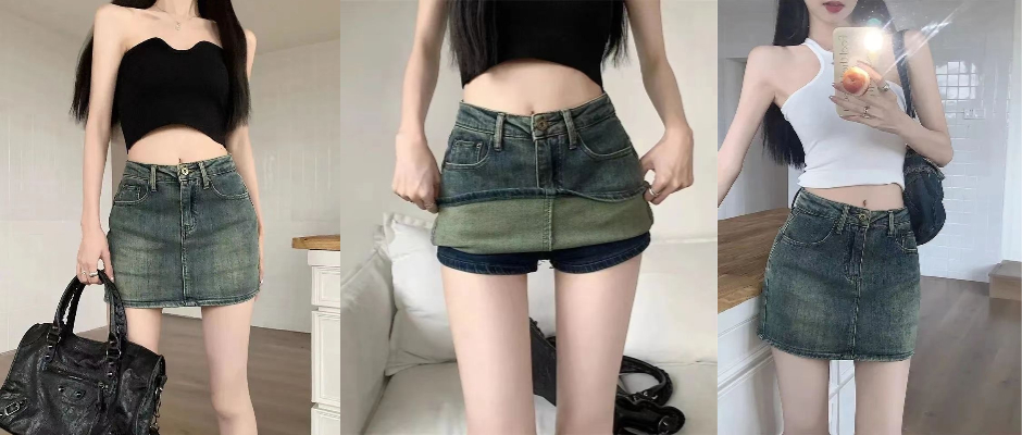 辣妹复古牛仔短裙女夏季2023新款防走光高腰显瘦a字包臀半身裙裤 牛仔裙 蓝色 s