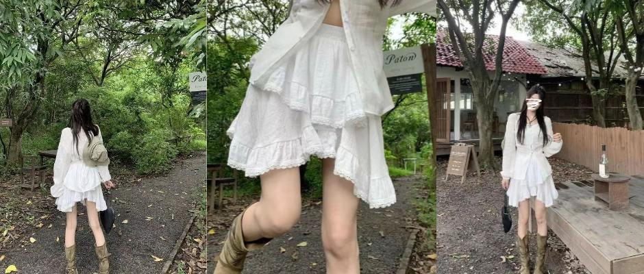 小清新拼接蕾丝白色半身裙短裙女春季2023新款高腰不规则蛋糕短裙 蛋糕裙 黑色 s