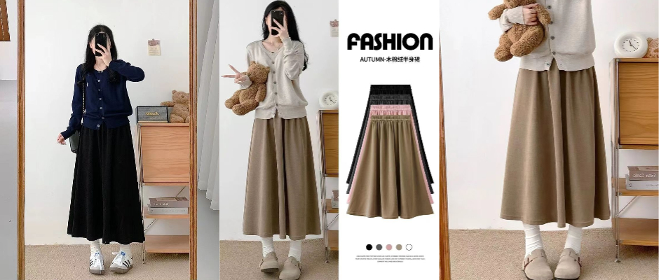 山本裙女秋冬季2023年新款高腰a字中长款伞裙显瘦小个子半身裙子 棕色 S