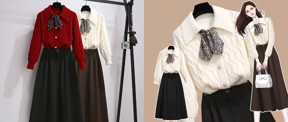 春季套装大码女装2023新款日系甜妹减龄毛衣收腰显瘦半身裙两件套 卡其色 s