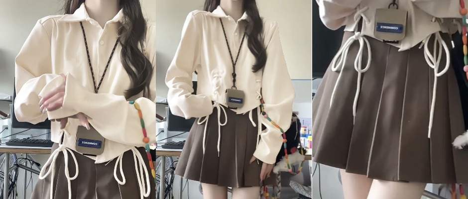 设计感小众学院风绑带短款长袖衬衫女+咖色百褶裙秋季新款两件套 卡其色 s