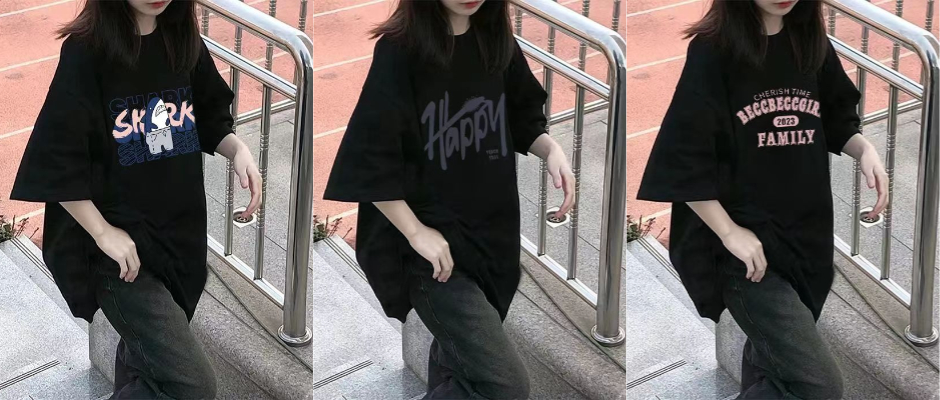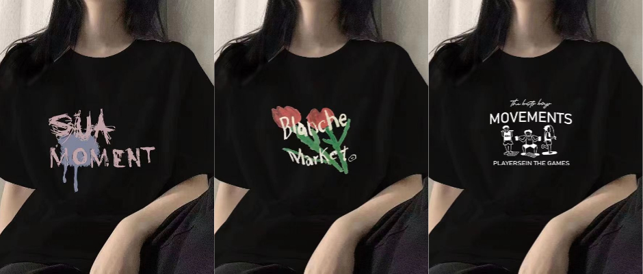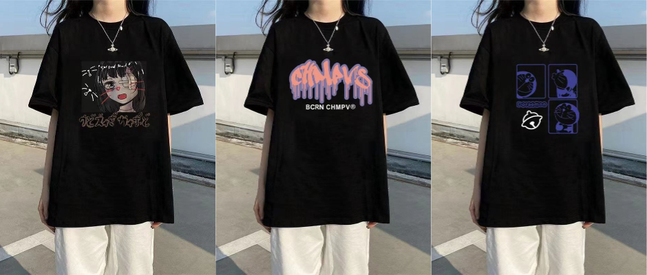 夏季新款大码女装100%纯棉短袖t恤女学生正肩宽松百搭印花上衣服 黑 S
