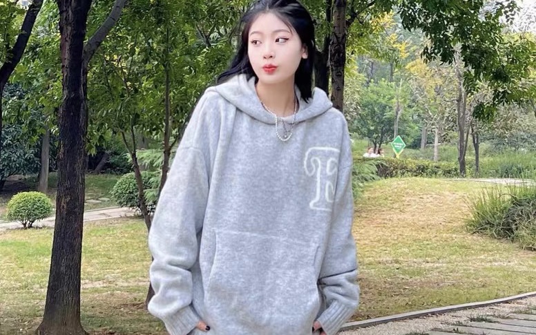美式灰色连帽卫衣女秋冬加绒国风情侣男女oversize高街遮屁股外套