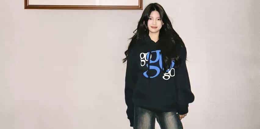 国潮复古字母设计圆领卫衣女秋冬加绒oversize美式复古高街上衣潮