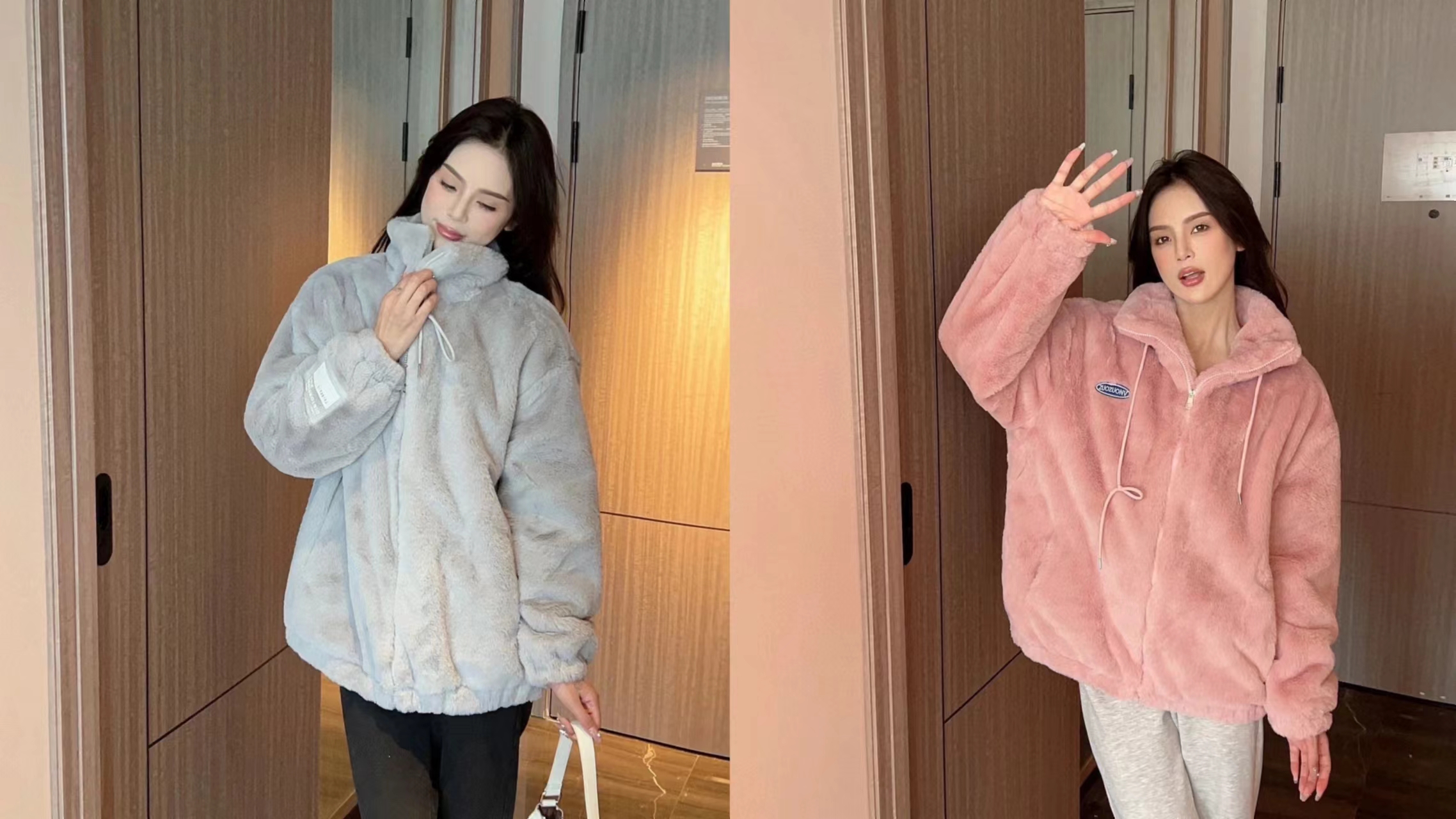 仿兔毛设计,舒适保暖 舒适领部与袖袢扣带设计 防风保暖衣身仿兔毛,丰盈柔顺 时尚保暖率性美感