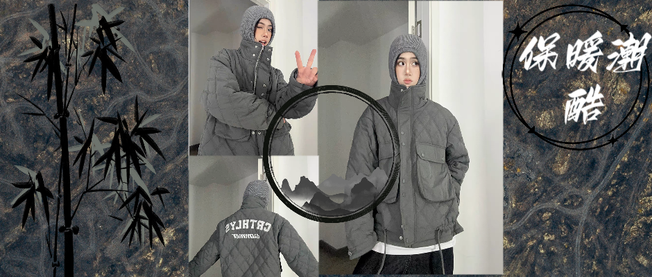 新款美式复古菱形刺绣棉服外套男女宽松百搭街头风ins潮