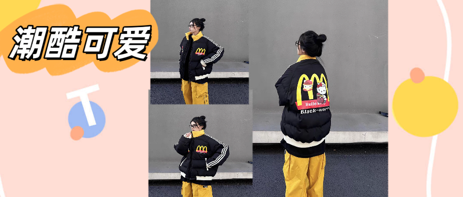 美式复古原创可爱冬季棉服宽松加厚立领面包服麦门印花