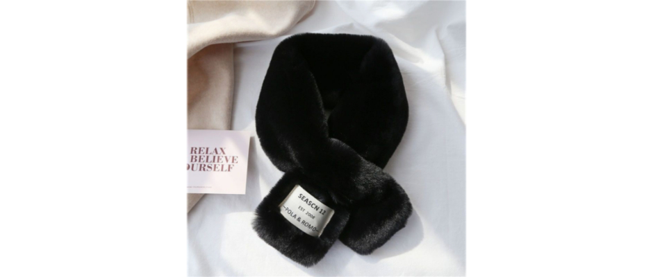 韩国chic风加厚纯色毛毛围脖保暖仿獭兔毛交叉围巾毛绒毛领女
