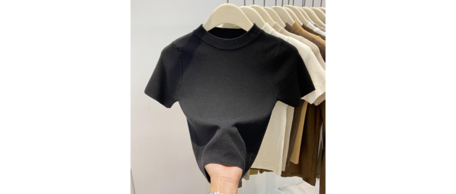 2023春秋季新款纯色内搭针织衫女百搭修身半高领短袖打底上衣潮